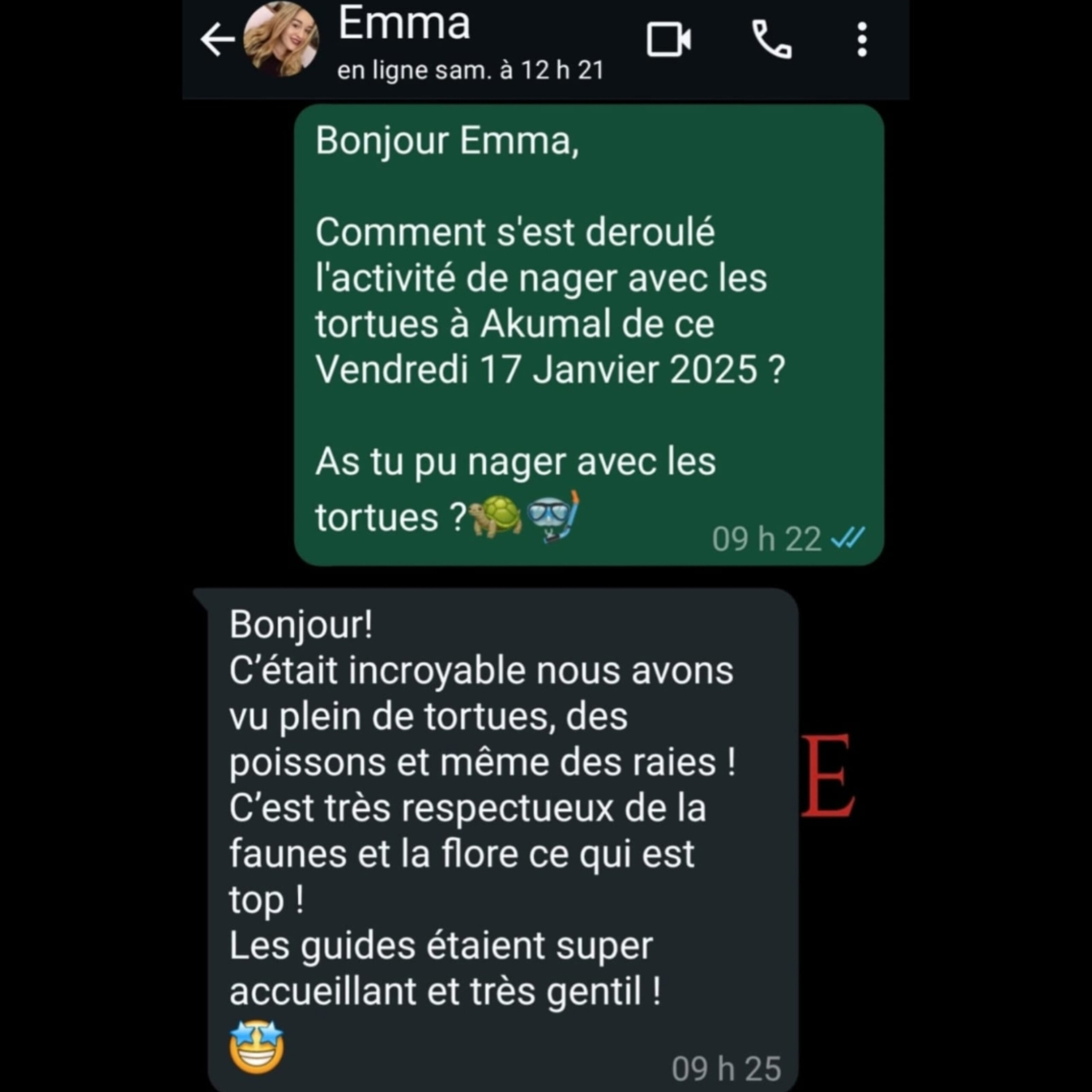 – Privilège de l’horaire prioritaire afin d’être seul avec les tortues,