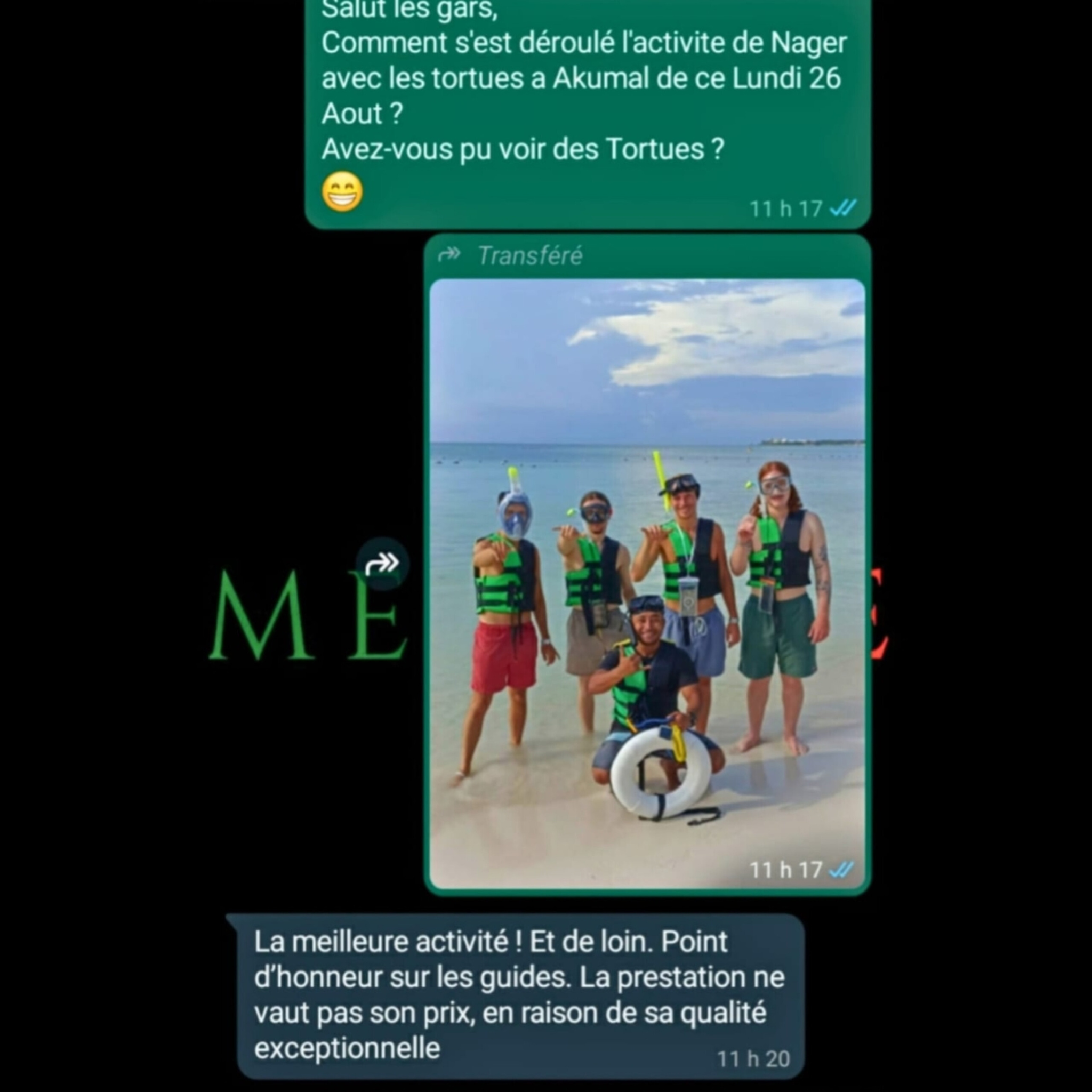 8h30, 9h00 ou 9h45 sont les départs de la collectivité à Akumal.