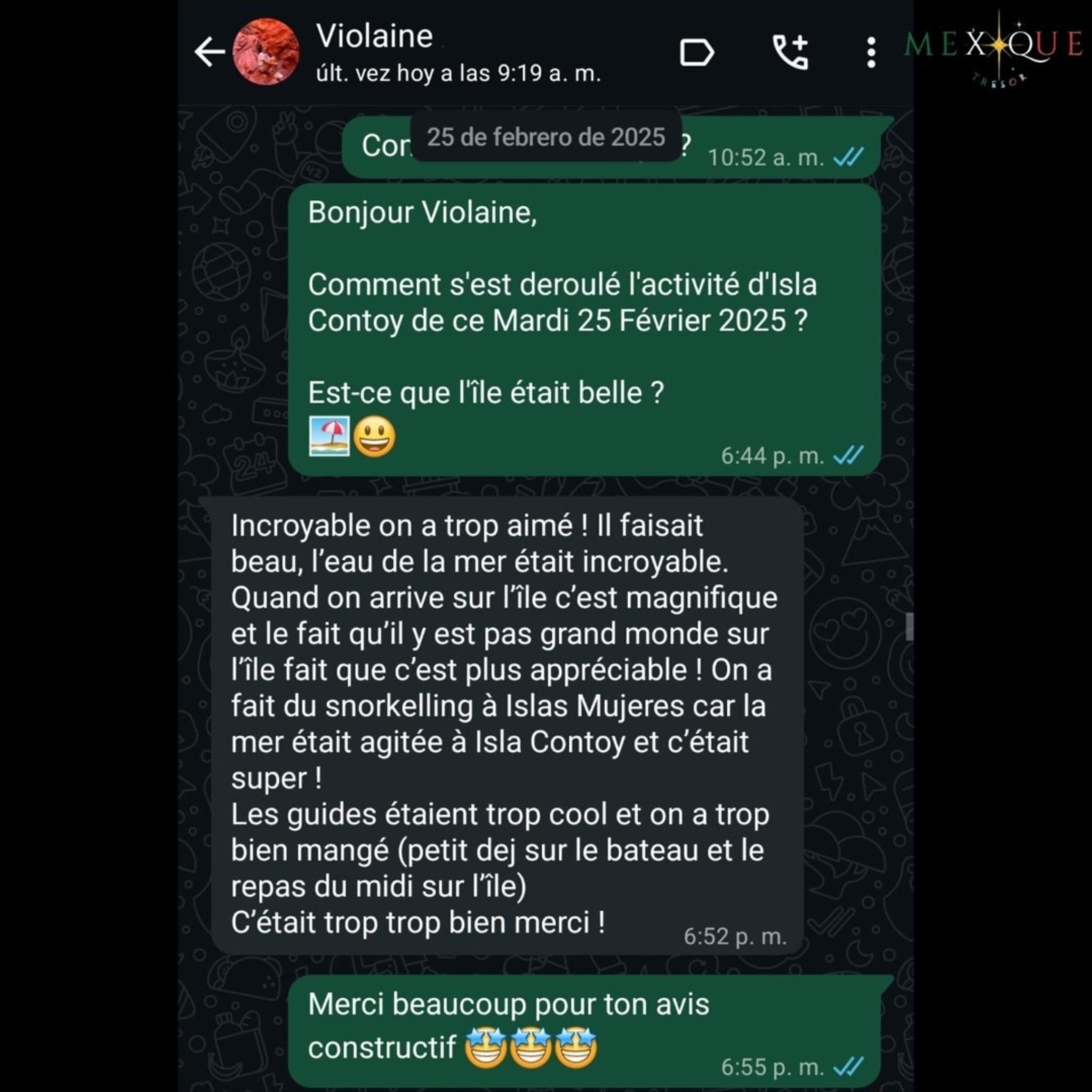 8h15 est le départ du port de Isla Mujeres